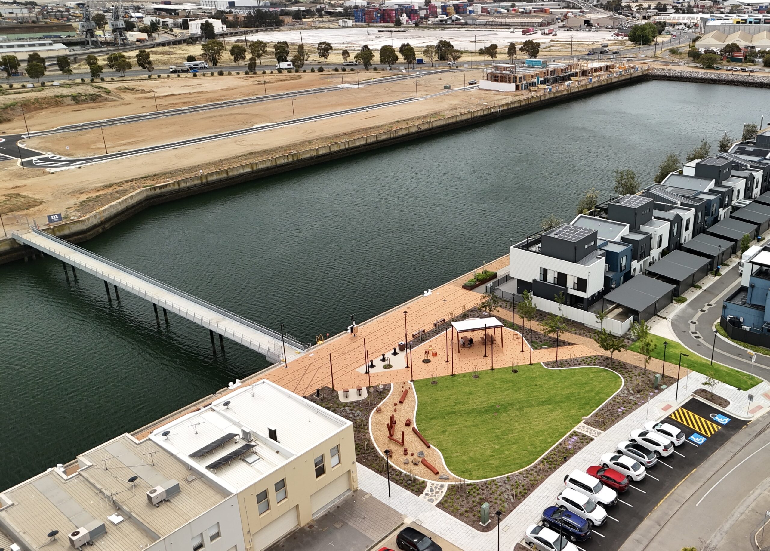 The new footbridge at Dock One North creates a seamless link to the heritage maritime precinct, enhancing walkability to the waterfront promenade, local cafés, parks and Port Dock Railway Station for a direct connection to Adelaide’s CBD.