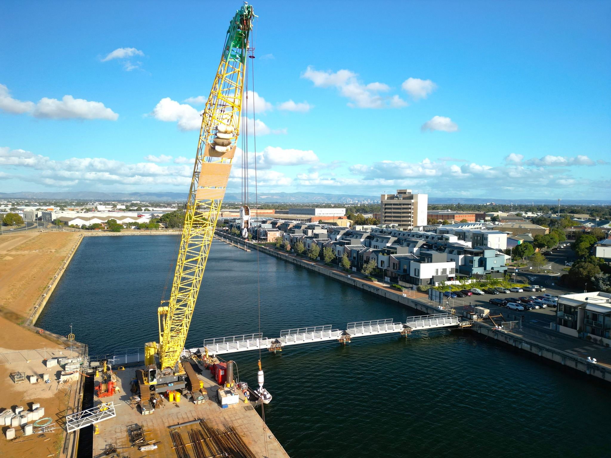 The bridge at Dock One is nearing completion, marking an exciting milestone for the development.The careful placement of the girders, craned into position, brings the project one step closer to connecting Dock One North with the Port.